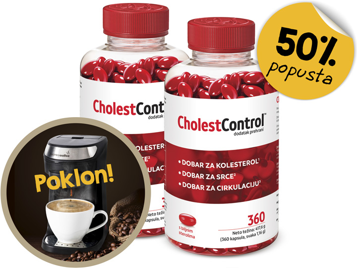 Da, želim iskoristiti ovu posebnu ponudu. Naručujem CholestControl za 12 mjeseci. Prvi mjesec dana dodatka prehrani iznosi SAMO 49,95 kn, a sljedećih 11 mjeseci platit ću u 11 prikladnih rata po 99,90 kn, umjesto u 199,80 kn (ukupno 1098,90 kn umjesto 2397, 60 kn). Uz to ću dobiti potpuno BESPLATNO originalni aparat za kavu.